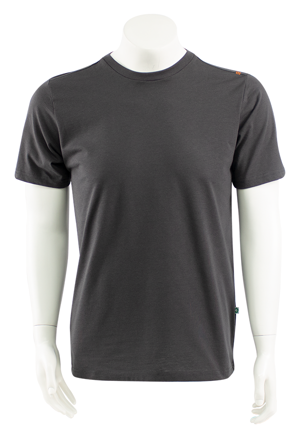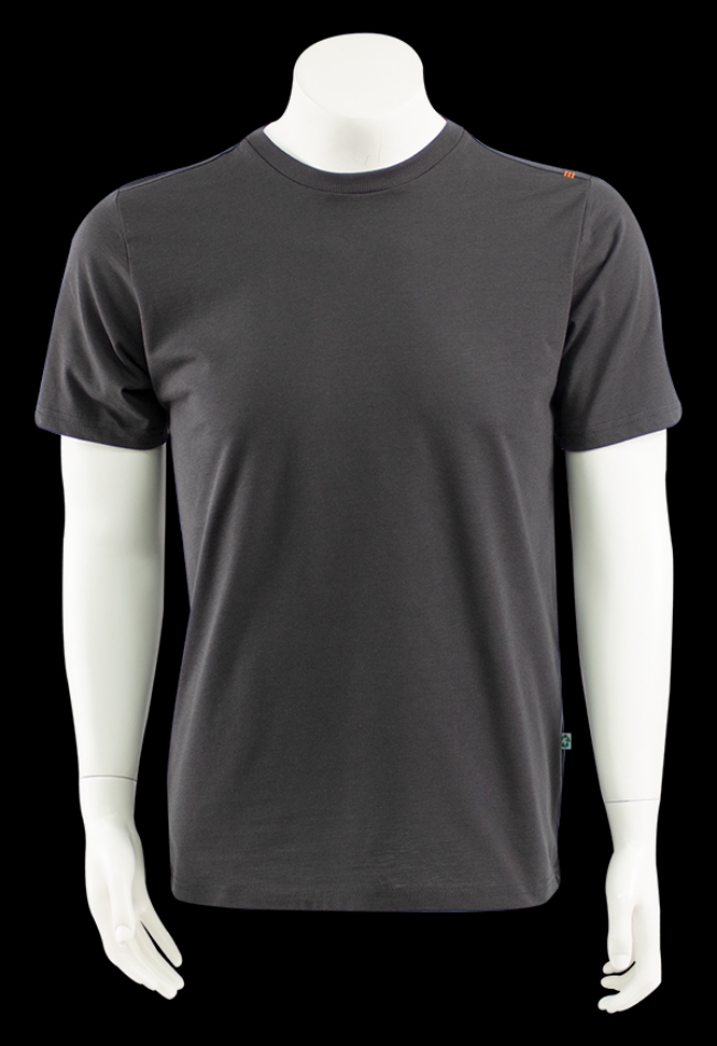 Ronde hals, korte mouw, gewicht: 160 gr./m2. Gemaakt vaan 50% recycled textiel, 50% recycled PET-polyester.
