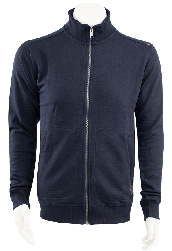 Steekzakken met ritsen, fancy overlock stiksels over de naden, sluiting met metalen rits, rib manchetten en boord, rib aan de binnenkant van de kraag, gewicht: 340 gr./m2. Gemaakt vaan 50% recycled textiel, 50% recycled PET-polyester.