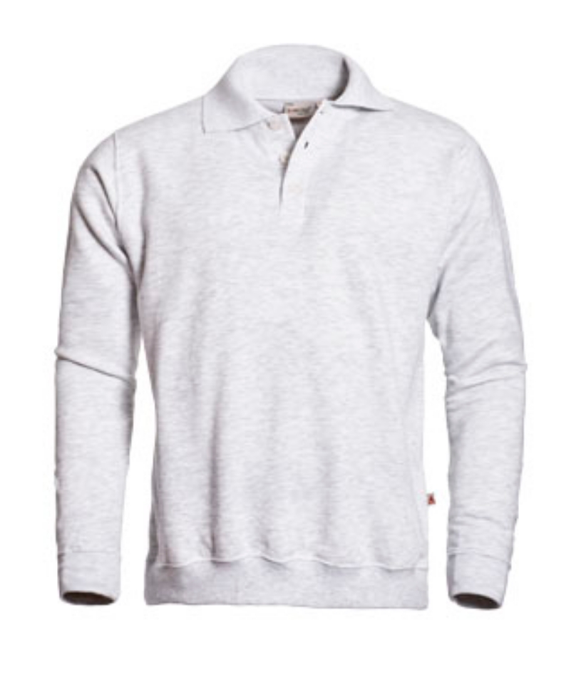Polosweater, 280 gr/m², 50% katoen / 50% polyester, binnenzijde geruwd, unisex, polokraag met 3-knoopsluiting, tailleband en manchetten met elastaan.