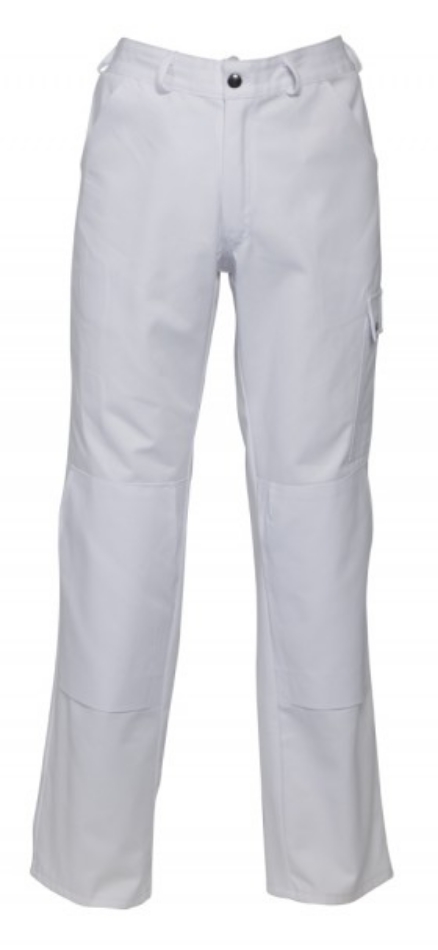 Verdekte ritssluiting, 2 ingezette zijzakken, 2 achterzakken waarvan 1 met knoop, duimstokzak, dijbeenzak met klep, kniezakken, elastiek in rug.