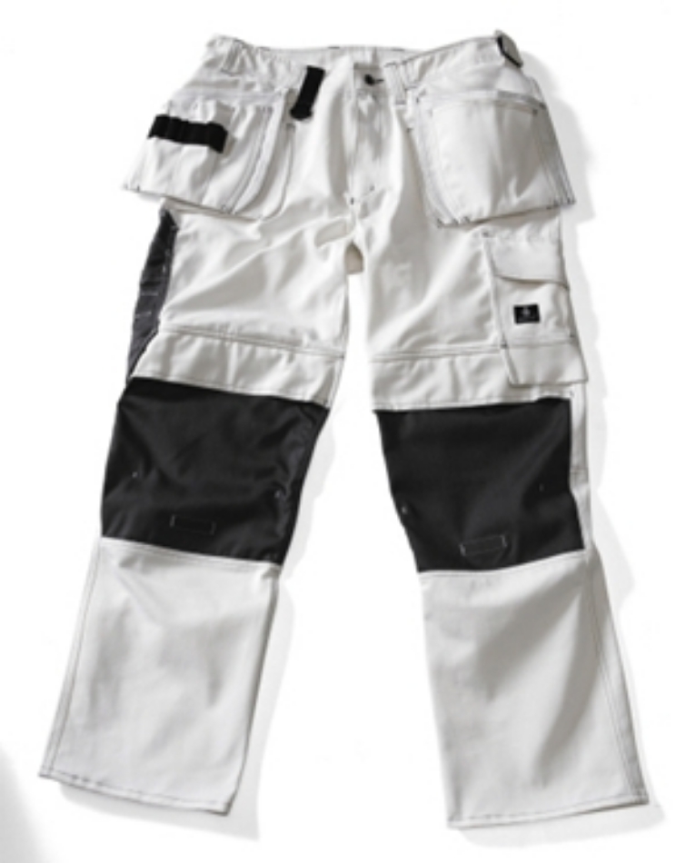 Tweevoudig en drievoudig gestikte naden aan de broekspijpen en in het kruis. Lage taille en voorgevormde tailleband. Ergonomisch gevormde broekspijpen. Riemlussen. D-ring. Gulp met rits. Gereedschapslus aan de tailleband. Spijkerzakken met versterkingen, extra zakken en lussen voor gereedschap. Openingen voor het wegsteken van de spijkerzakken. Voorzakken. Achterzakken met versterking, klep en klittenbandsluiting. Verstelbare hamerlussen. Dijbeenzak met telefoonzakje en klep met klittenbandsluiting. Duimstokzak met cordura versterkt en met klein zakje aan de buitenzijde. Pennenzakje. Knopen ter bevestiging van een mes. Verstelbare kniezakken van zeer duurzaam cordura (1000 D) met klep en opening aan de bovenzijde. Contraststiksels. Reflectie-effecten.
