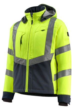 Fluorescerend, met rechte en verticale, schuine reflectie. Tweekleurig. Ademend, winddicht en waterafstotend. Fleece aan de binnenkant. Sluiting met rits en inwendige windvanger. Afneembare gevoerde capuchon met verstelbaar elastisch rijgsnoer. Hoge kraag. Binnenzakken. Binnenzak met ritssluiting, speciaal ontworpen voor mobiele telefoon en headsetkabel, met gat en lussen om de kabel op zijn plaats houden. Verlengde rug. Borstzak met rits. D-ring. Pennenzakje. Voorgevormde mouwen. Tricot (verborgen in windvanger) bij de pols. Manchetten met CORDURA® versterkingen en snelsluiting. Voorzakken met rits. Hi-Vis groep A. Gecertificeerd volgens EN ISO 20471 - kl. 3 (S-M = kl. 2).