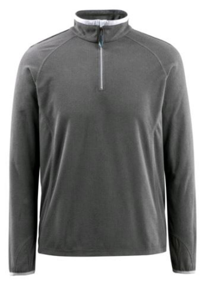 Moderne pasvorm. Rits bij de hals met windvanger. Elastiekband bij de pols. Openingen voor de duim in de mouwen.