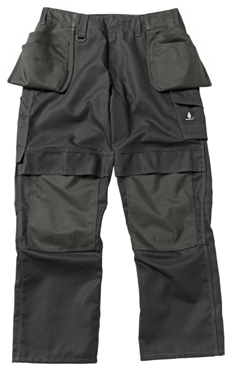 Lichtgewicht materiaal. Drievoudig gestikte naden aan de broekspijpen en in het kruis. Lage taille en voorgevormde tailleband. Ergonomisch gevormde broekspijpen. Riemlussen. D-ring. Gulp met rits. Spijkerzakken van polyester met versterking en extra zakken. Voorzakken. Achterzakken met versterking. Verstelbare hamerlus. Dijbeenzak met klep en verborgen drukknopen. Versterkte duimstokzak. Pennenzakjes. Verstelbare kniezakken van polyester met klep en opening aan de bovenzijde. Contraststiksels. Reflectie-effecten.
