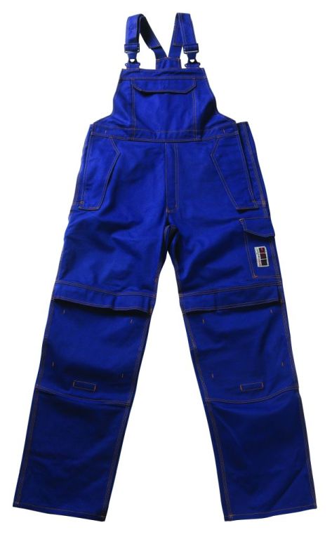 Antistatisch, zuurbestendig en vlamvertragend PyroPro. Beschermt tegen vlambogen en incidenteel lassen. Drievoudig gestikte naden aan de broekspijpen en in het kruis. Verstelbare schouderbanden met korte sterke elastieken en kunststof gespen. Borstzak met klep en verborgen drukknoop. Binnenzak met klittenbandsluiting. Verstelbare tailleband. Voorzakken. Gulp met rits. Achterzak met klep en verborgen drukknopen. Dijbeenzak met klep en verborgen drukknopen. Duimstokzak. Verstelbare kniezakken met klep en opening aan de bovenzijde. De naden naar onderen gericht, zodat lasspatten zich niet vasthechten. Contraststiksels.